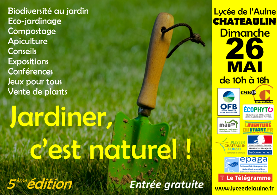 Le Lycée de l’Aulne (Châteaulin) tiendra le 26 mai 2024 la 5ème édition de “Jardiner, c’est naturel“. L’objectif de cet évènement entièrement gratuit consiste à l’acquisition de compétences de jardinage au naturel. Issu d’un partenariat entre le Lycée de l’Aulne, la Maison de l’Agriculture biologique du Finistère et les Syndicats de bassin de l’Elorn…