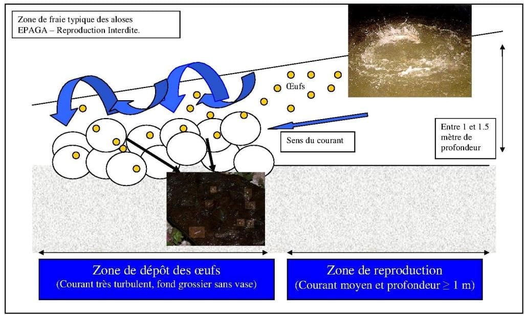 Malheureusement, l’alose est incapable d’atteindre cette seconde frayère à cause de la présence de 5 barrages déversoirs. Depuis 2014, une opération innovante est menée afin de faciliter leur franchissement : l’ouverture des pertuis. Néanmoins, la rénovation des passes à poissons est aussi à l’étude.