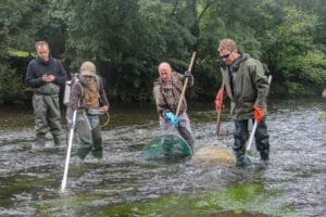 Tous les ans depuis 1997, la fédération de pêche du Finistère recense les juvéniles de saumon sur les zones de reproduction du bassin de l’Aulne.